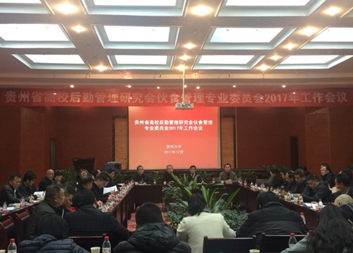 12月28日下午,我院后勤管理处相关人员受邀到贵州大学北校区双馨园参加了贵州省高校后勤管理研究会伙食管理专业委员会2017年工作会议。