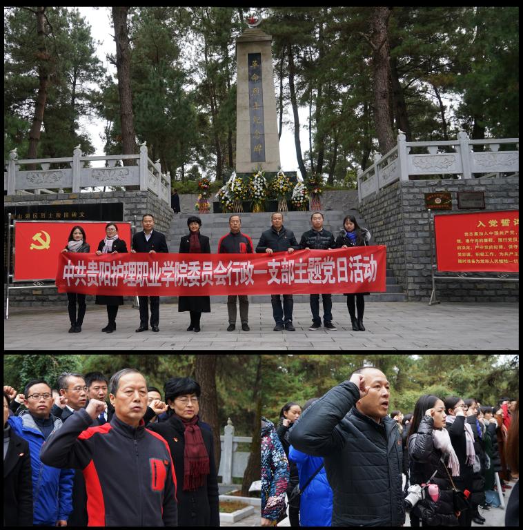“我宣誓,我志愿加入中国共产党,拥护党的纲领,遵守党的章程,履行党员义务……”11月23日,我院行政一支部按照学院党委的统一部署,组织全体党员到观山湖区朱昌镇革命烈士纪念墓开展“重温入党誓词”主题党日活动。学院党委副书记、纪委书记朱虹,党委委员、党办主任蔡怡平以普通党员身份参加支部主题党日活动。