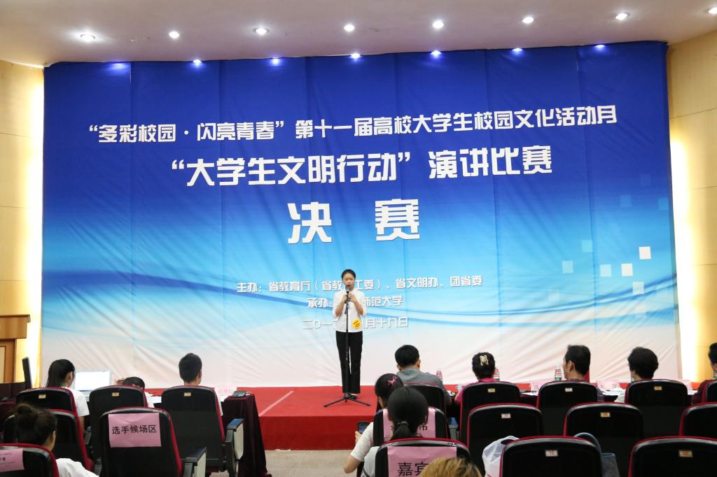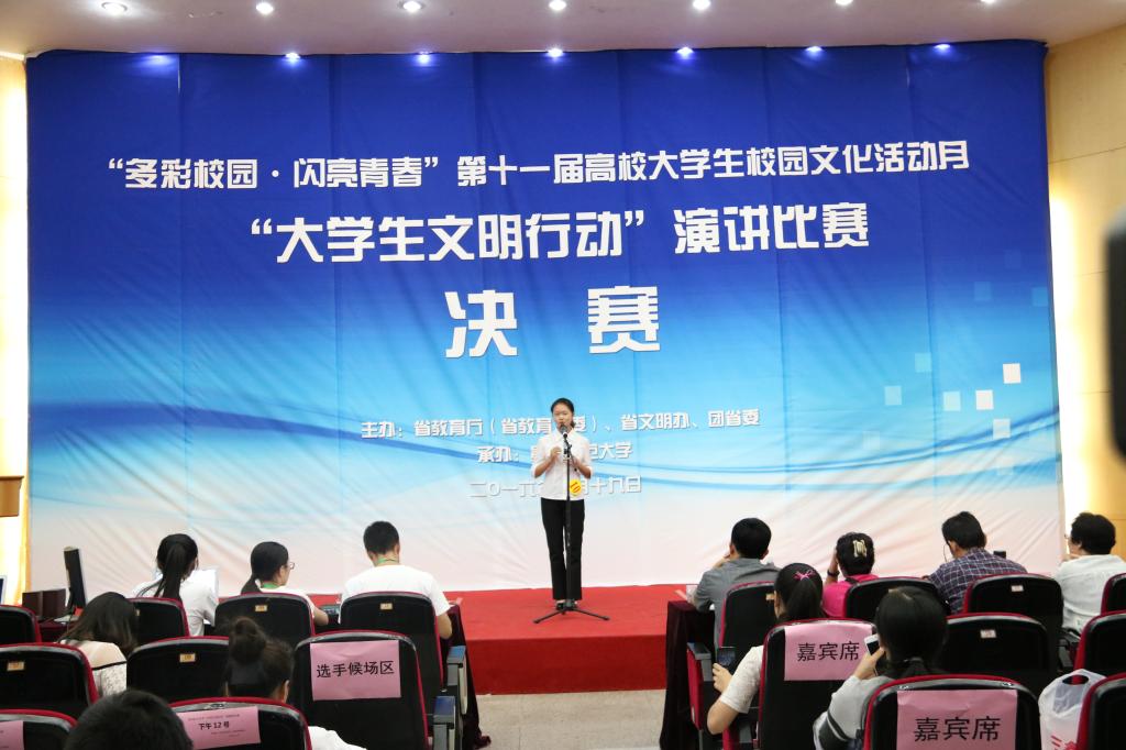 9月19日,“多彩校园,闪亮青春”第十一届高校大学生校园文化活动月之“大学生文明活动”演讲比赛决赛,在贵州师范大学举行。共有38所高校参赛,其中19所本科院校,18所高职院校,共计55名选手。我院参赛选手郑瑶瑶发挥出色,最终获得三等奖的优异成绩。