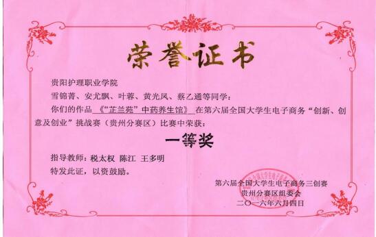 荣获我国第六届全国大学生“互联网+” 大赛贵州赛区一等奖