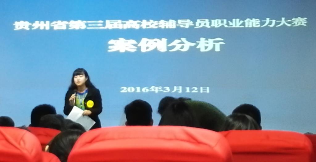 3月11-13日,贵州省第三届辅导员职业能力大赛在贵州大学举行,我院药学系辅导员刘明玉代表学院院参赛,喜获三等奖。